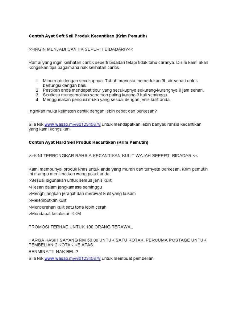 Contoh Ayat Sofsell Untuk Kosmetik